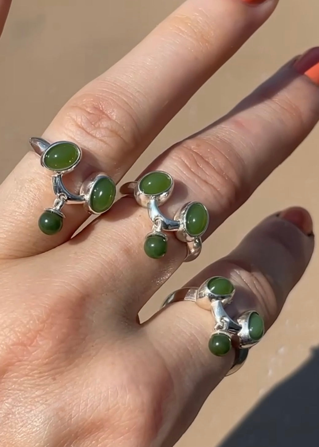 Solid 925 sterling silver ring featuring natural Jade.
