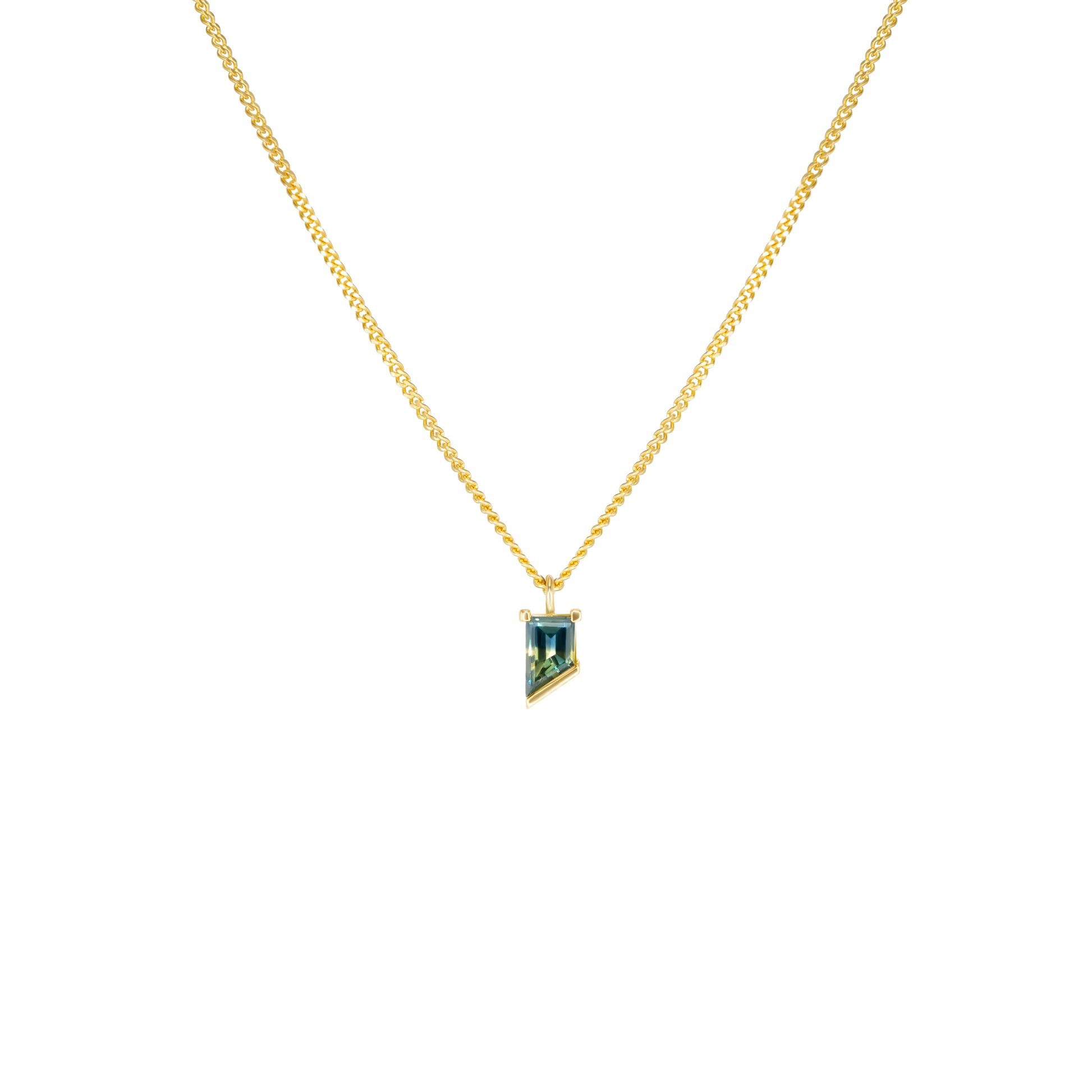 One if a kind solid 18k yellow gold necklace and pendant featuring a .51 carat natural Australian sapphire. Necklace length 18 inches with lobster clasp closure.